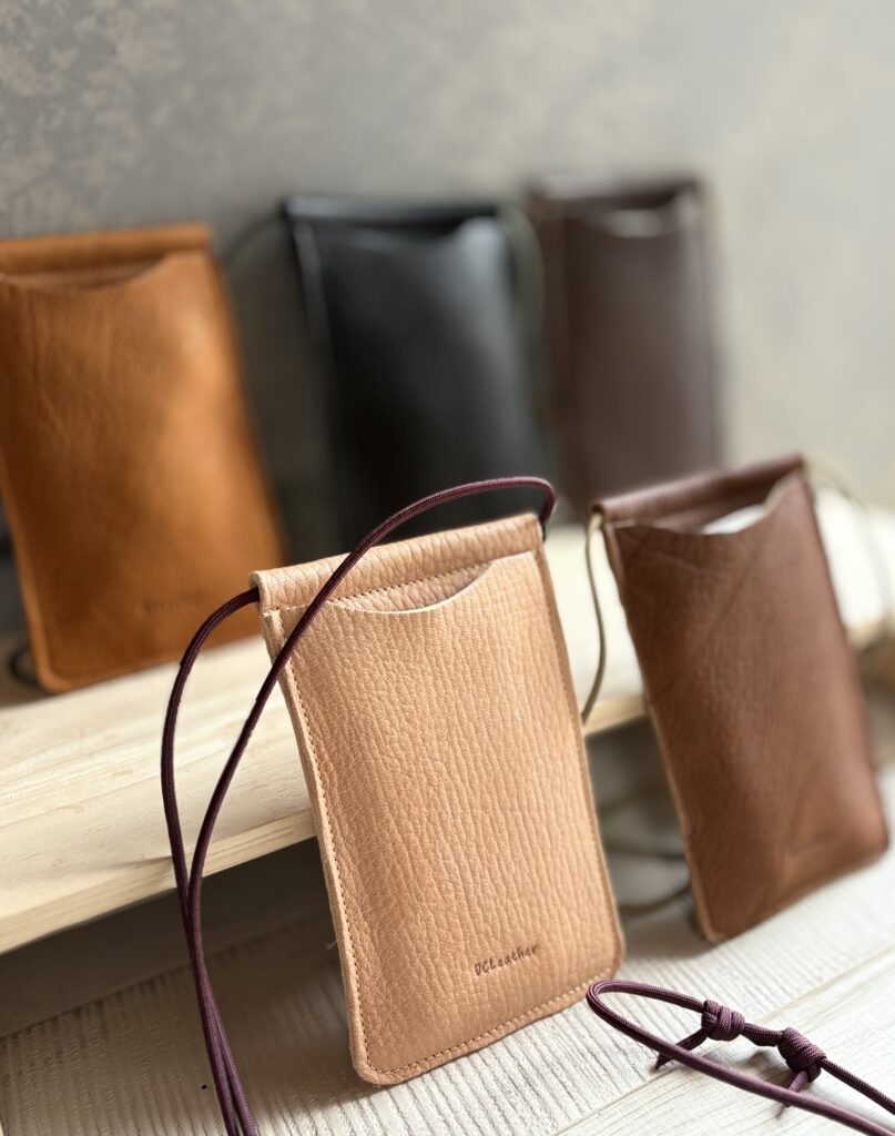 ご好評いただいているディアスキン(鹿革)のバッグやすまほ袋、めがね袋、小銭入れをカラー豊かに揃えました♪