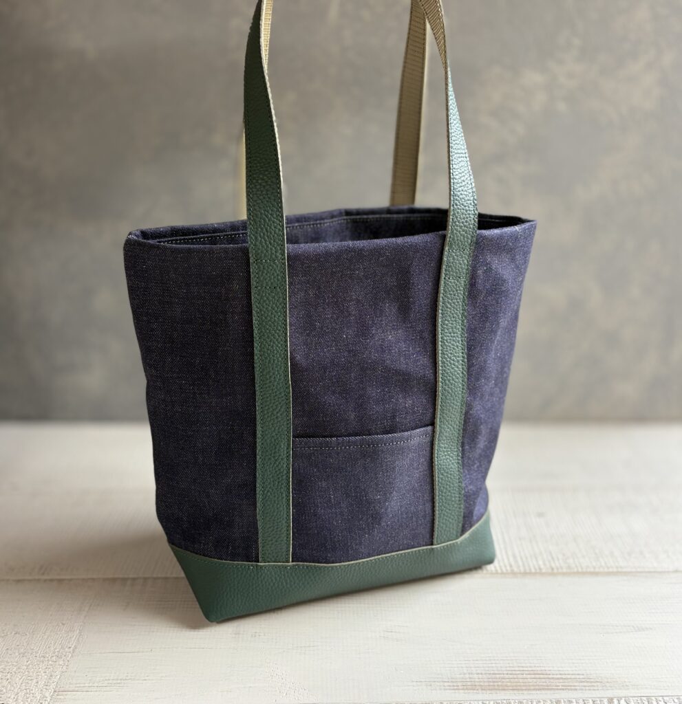今回はデニム生地と深緑色の革でのご要望をいただきました。