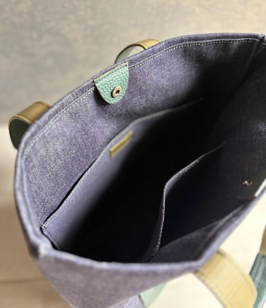 紺と濃い緑色の組み合わせがとっても素敵なバッグになりました😊