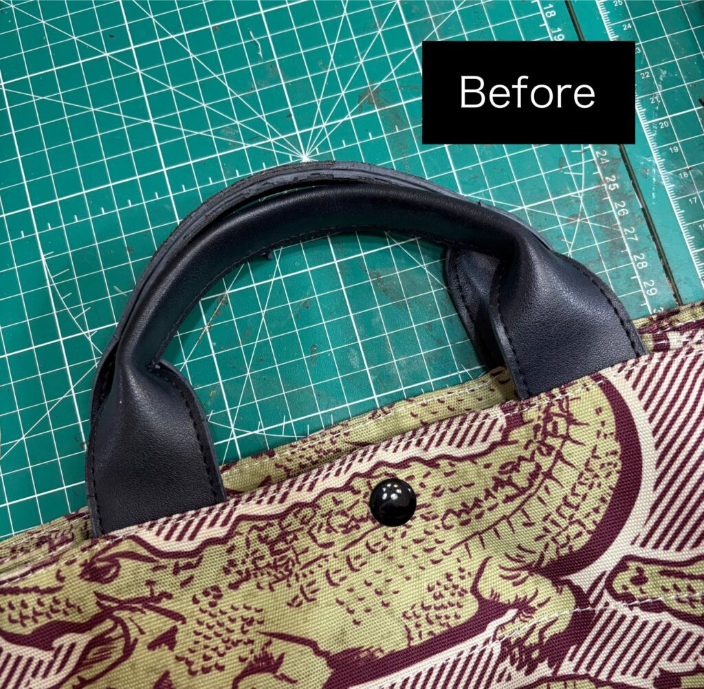 元々は黒い革の持ち手でしたが、今回はバッグ本体のカラーと合わせてドラーロのワイン色でリメイクさせていただきました😊